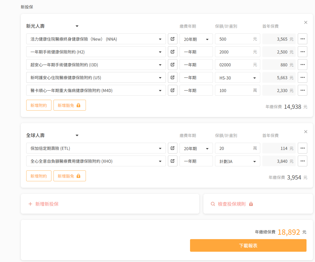 建議可以優先參考新光+全球的搭配方案 用兩家優勢商品來搭配補強