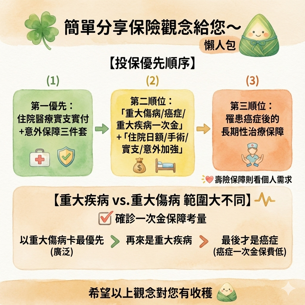 建議把所有保單的主約+附約保費和投保時間都貼上來哦!保單健診過後,會根據需求和保障缺口搭配適合您的商品哦~也會更符合您的需求!