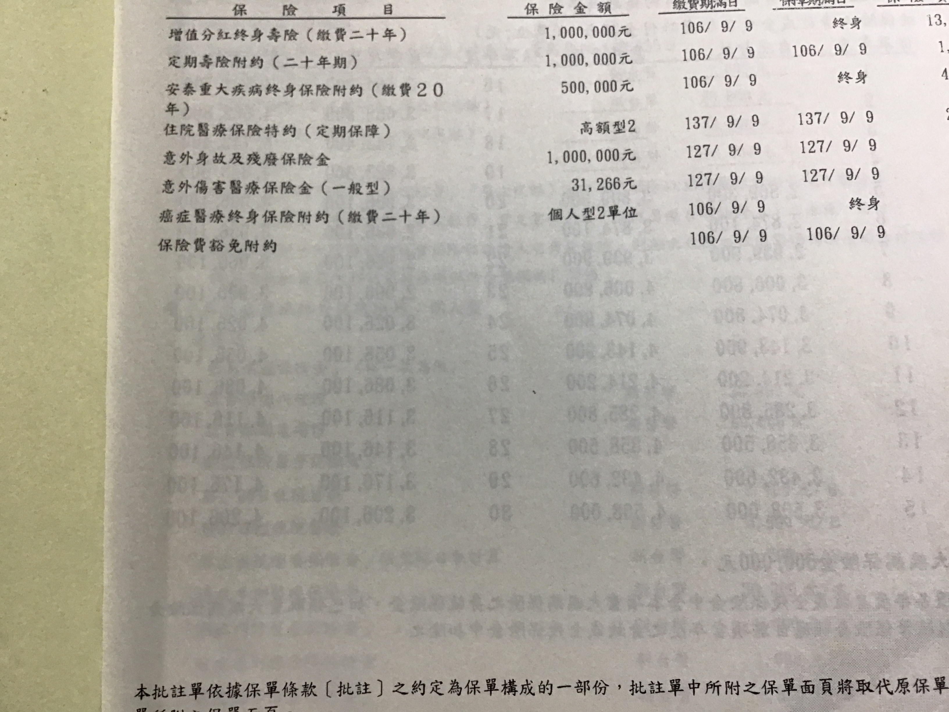 舊保單內容:壽險、定期壽險