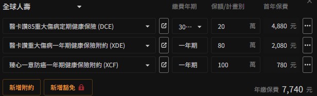 預算允許下,可以再加上癌症一次金RQ1保額100-200萬跟療程型XCD 6單位,拉高一次金額度喔