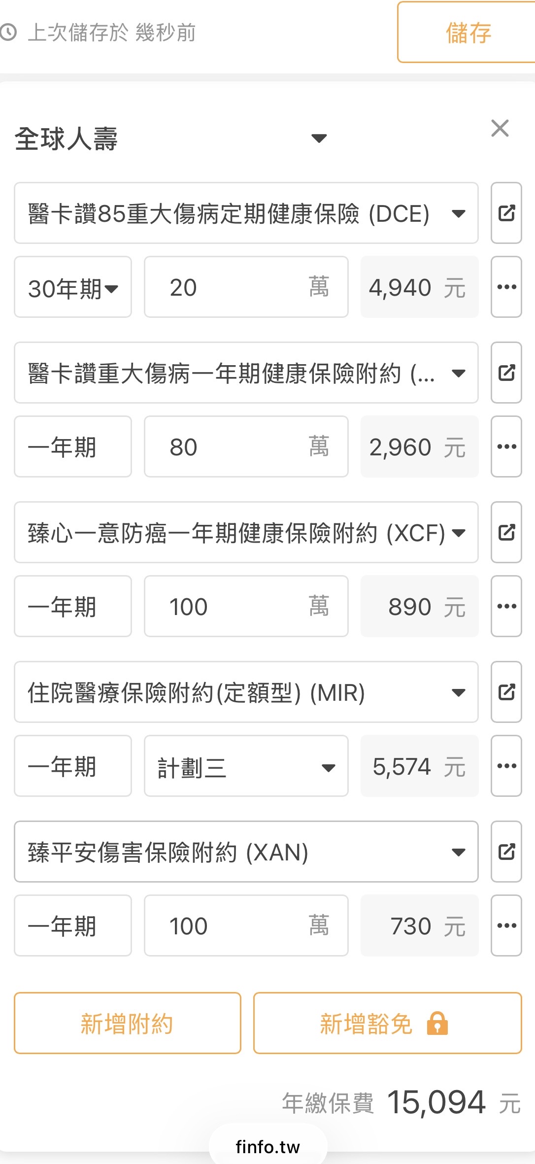- 建議選擇終身型,新光、凱基都可納入比較。