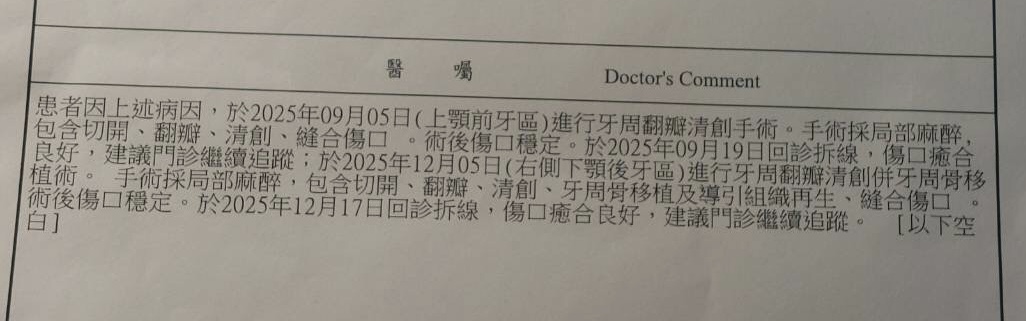 各位好~最近家人有牙齒治療上的問題想請教,他的保險是「全球人壽 - XHR計畫五」,以下附上收據與診斷證明,再麻煩各位看一下有沒有需要補充的地方,感謝🙏