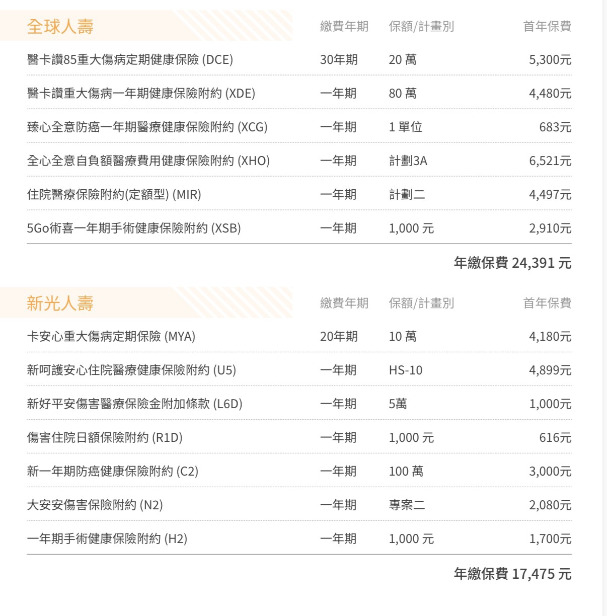 新光主約也可參考防癌fca 或是意外險wga 保費會低一些