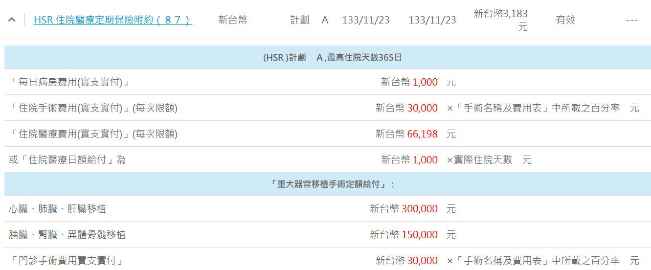 🔺舊保單有:醫療實支實付