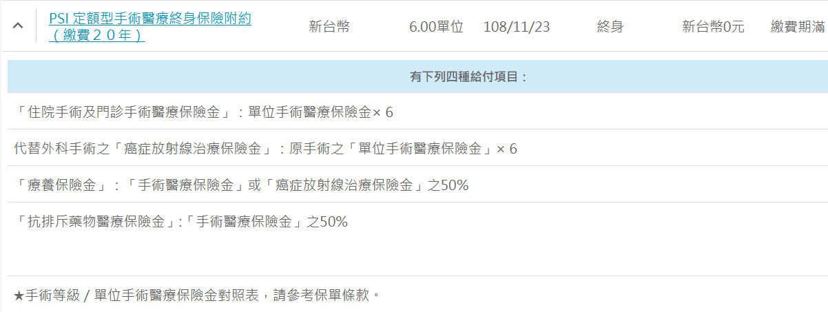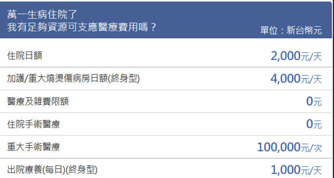優點:重大傷病慢性精神病不打折、相對其他家保費相對平準:住院+手術定額險手術定義較寬鬆