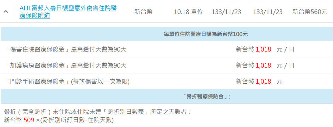 1. 加買 富邦人壽全鑫一年期住院醫療健康保險附約(HSY),這有10萬自負額,不須再買主約,但有每年75萬元額度限制