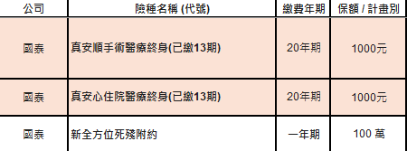 因之前國泰理賠,覺得業務沒有處理很好,所以考慮要更換,順便規劃看看別家,也把實支額度拉高