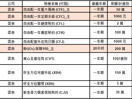 2024/04 後來規劃:重大傷病50萬、癌症100萬、壽險200萬、意外失能150萬、意外實支5萬、實支實付10萬
