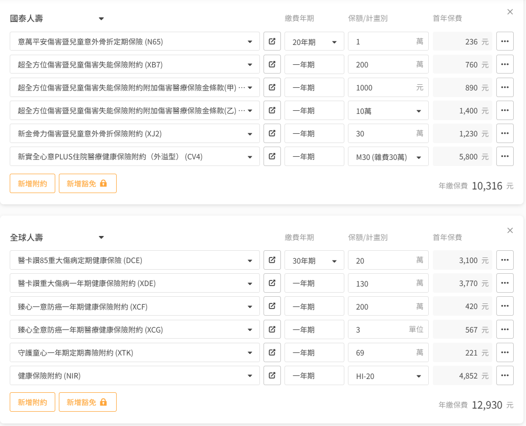 🏡 初步推薦組合(點擊看詳細保單內容):