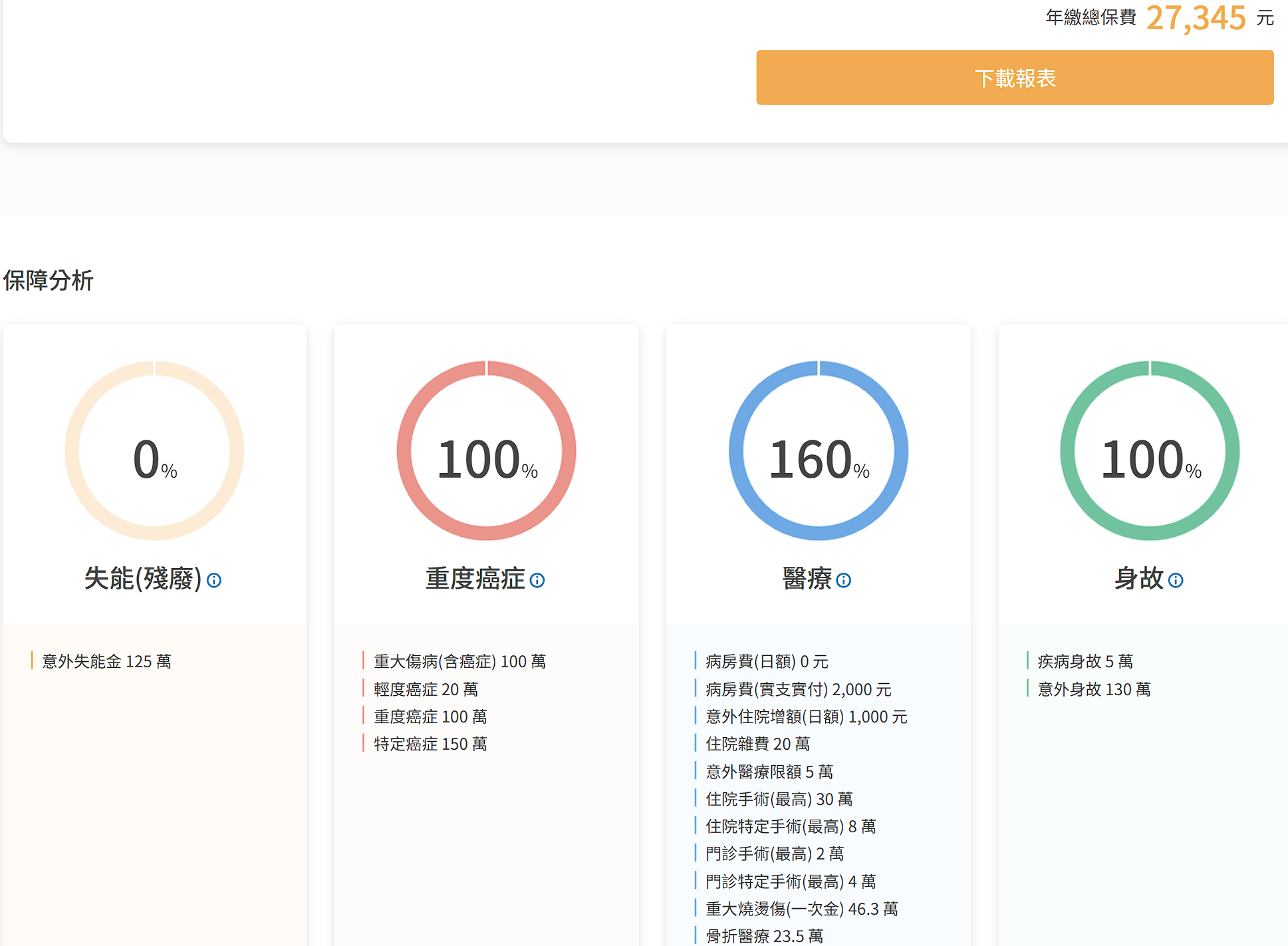 1、醫療實支規劃可以參考富邦或新光,主約必是以成本最低的險種做搭配