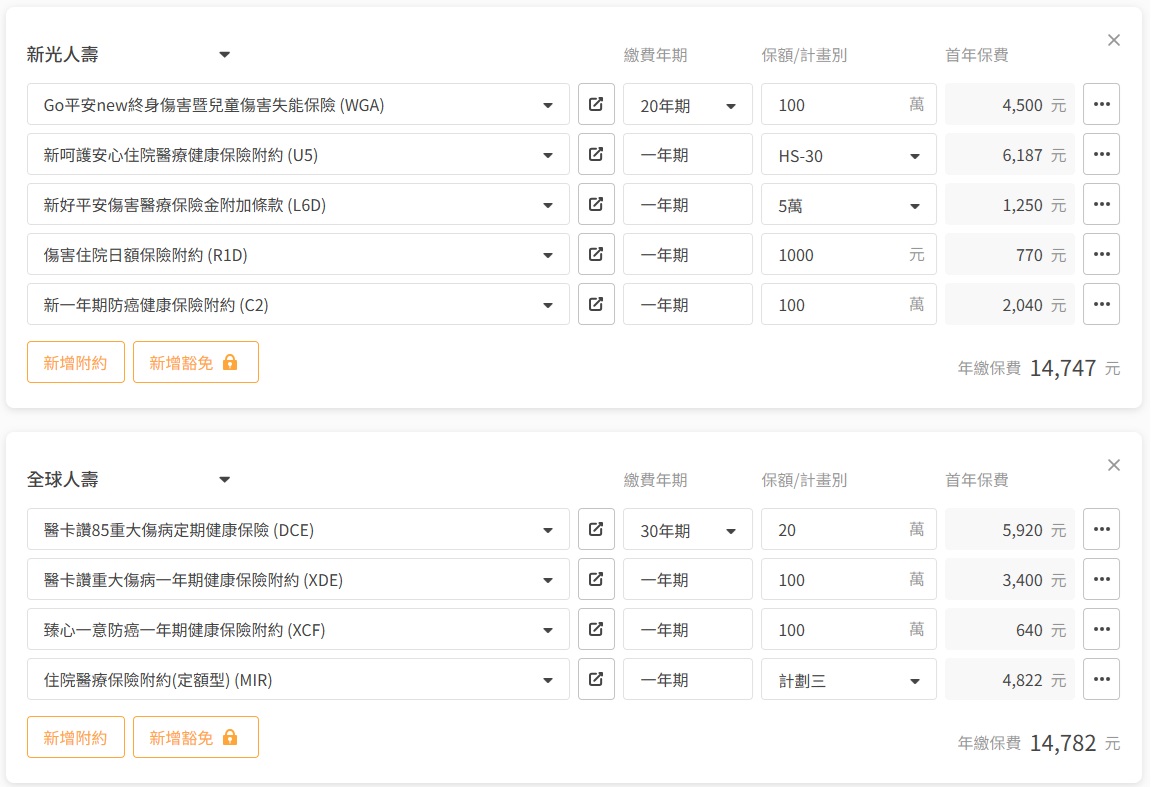 目前搭配的新光+全球方案鰻完整的 稍微調整一下即可出單