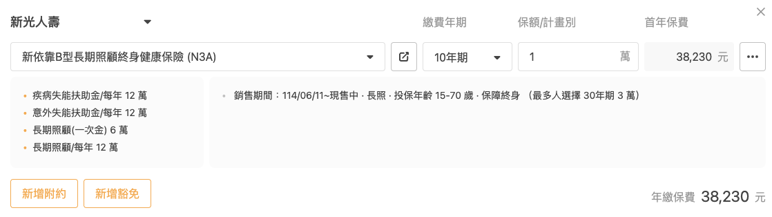 目前有看到 南山人壽照亮幸福長期照顧保險 (1LTC) 這個?