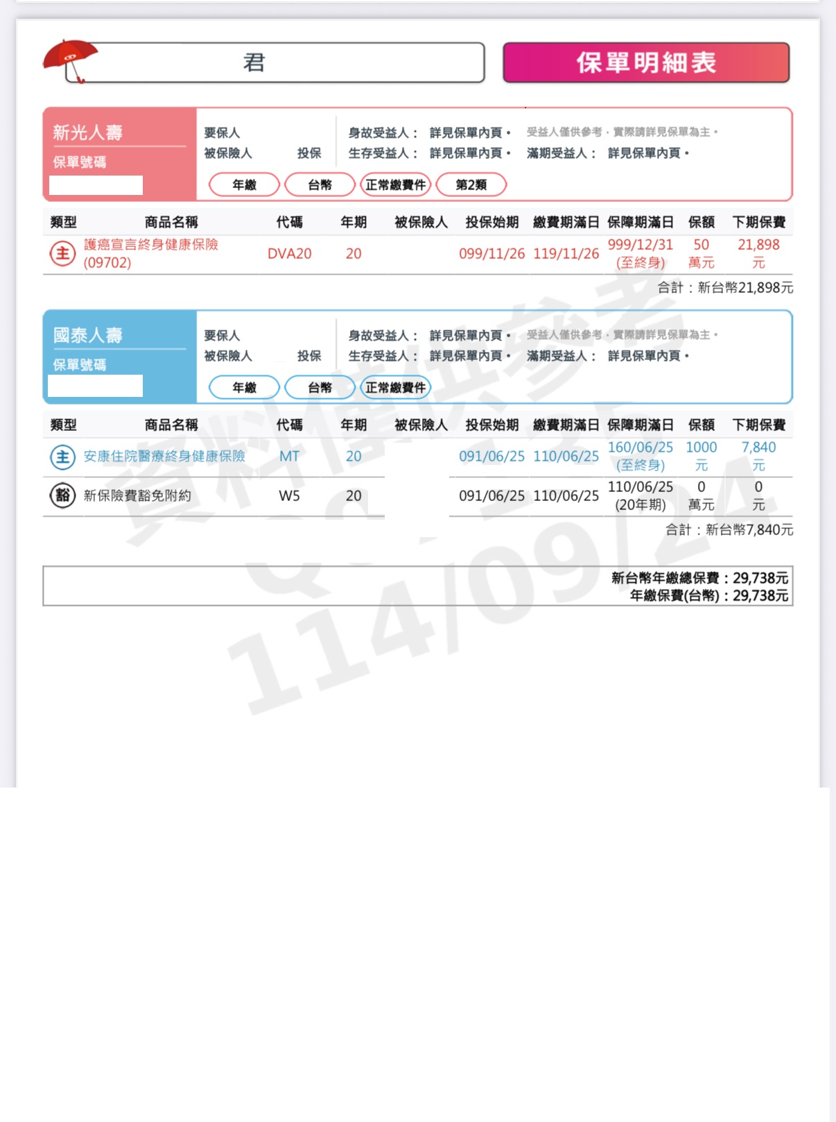 目前有的保單如圖
