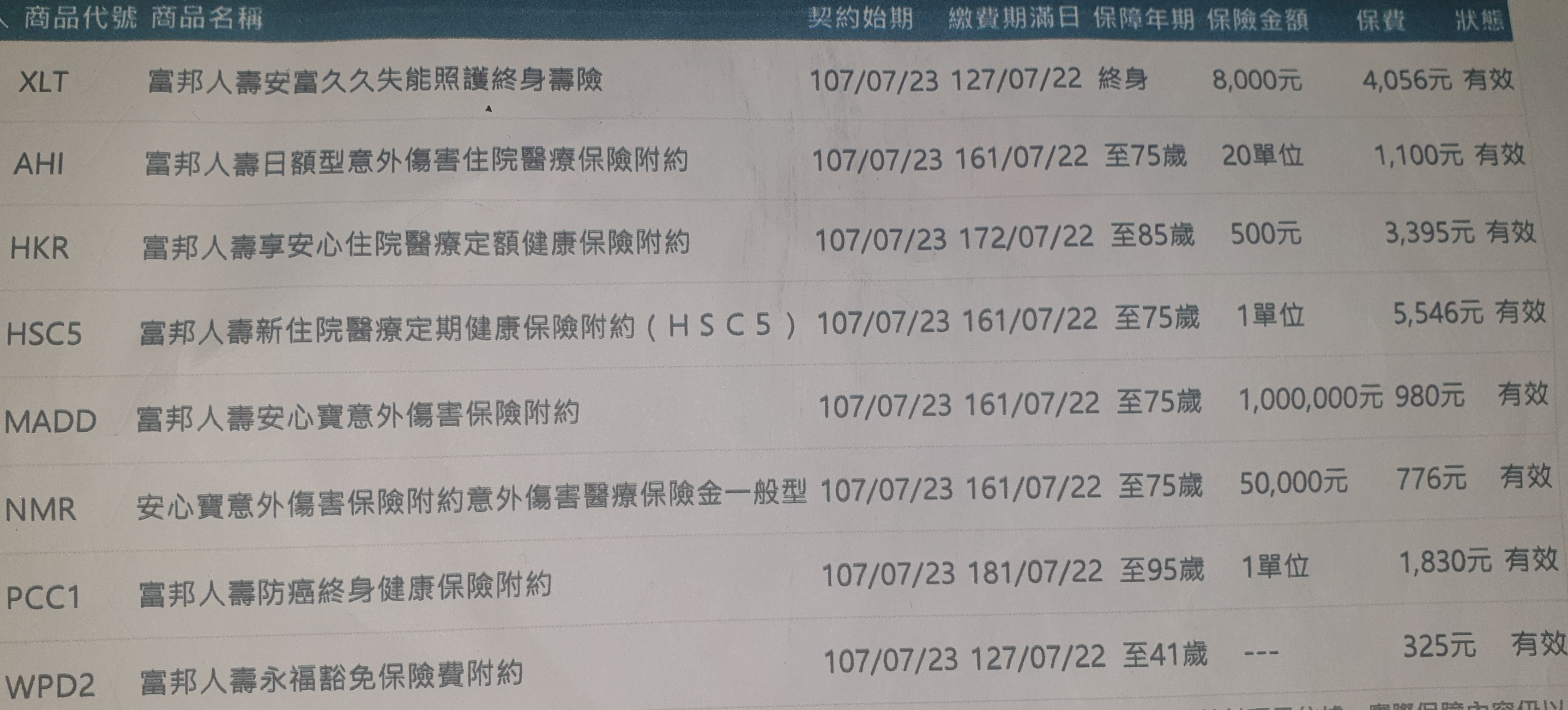 1、原本富邦有買到終身失能險真的很棒,可惜投保額度較低,