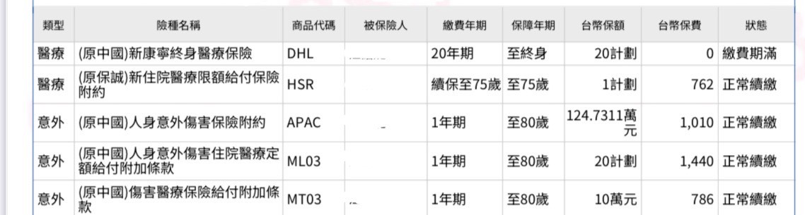 🔺舊保單有:終身醫療、終身重大疾病、終身防癌(療程型)、醫療實支實付、意外險(含醫療)