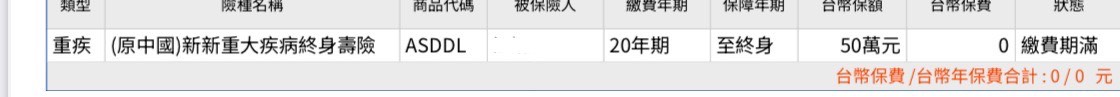 這是之前家人幫忙保的,我覺得癌症一次金的部分只有20萬太少以及缺乏重大傷病跟醫療實支實付的額度很低。