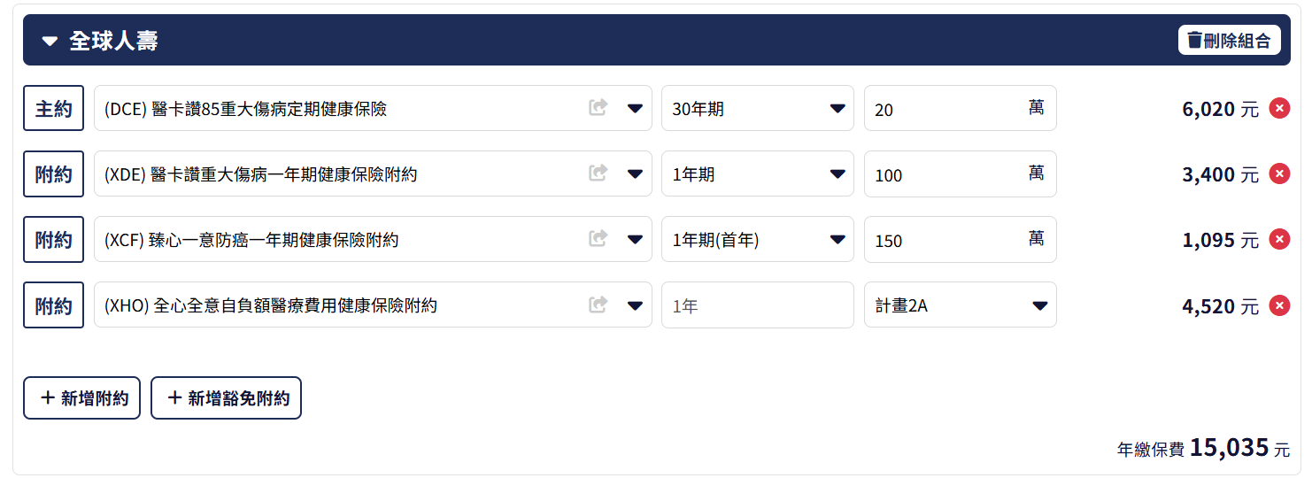 可參考以下方案加強原有保障,額度內容皆可再調整