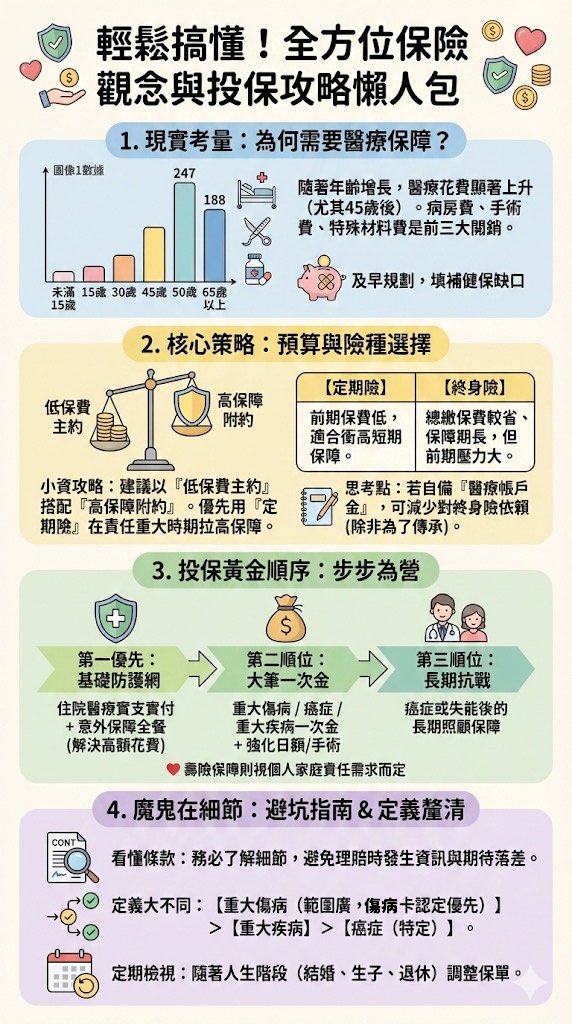 目前的保險規劃,應以**「最低預算,換取最大保障」**為原則。