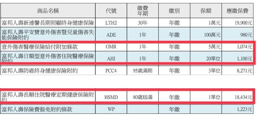 先恭喜您有規劃到富邦醫療實支HSM跟意外實支OMR(有保證續保),請務必好好繳費保留喔