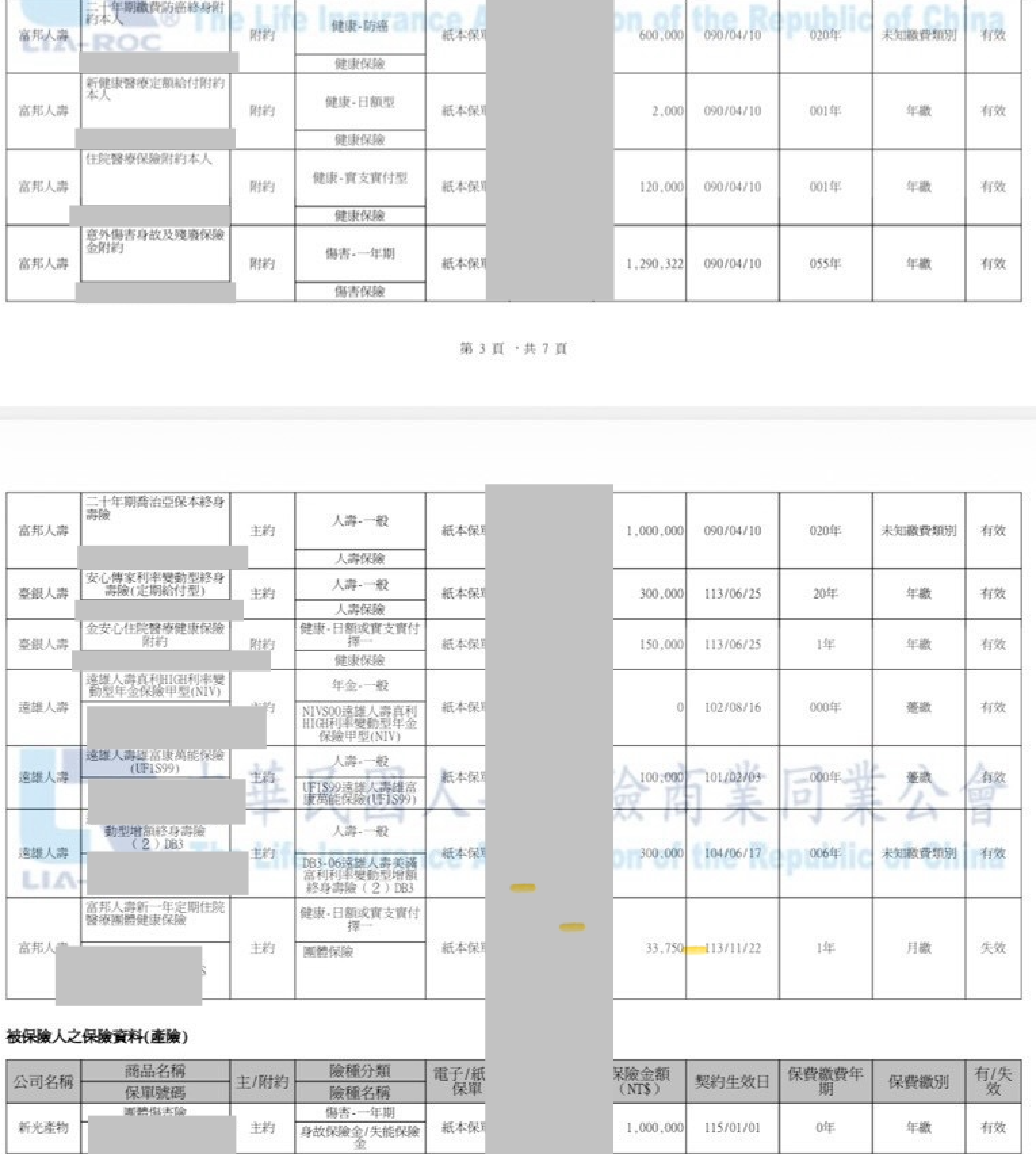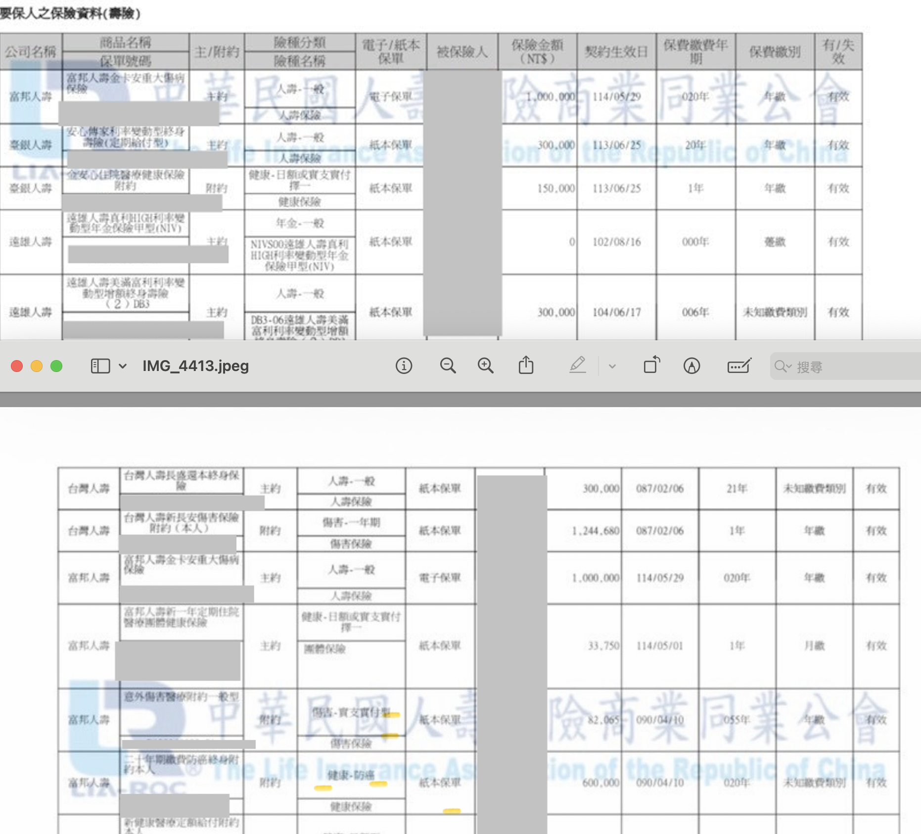以下是目前有的保單