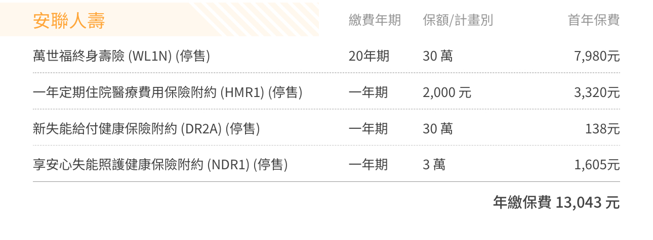 1️⃣舊保單:雙實支、意外四寶、終身醫療、少少的重大傷病、絕跡失能險