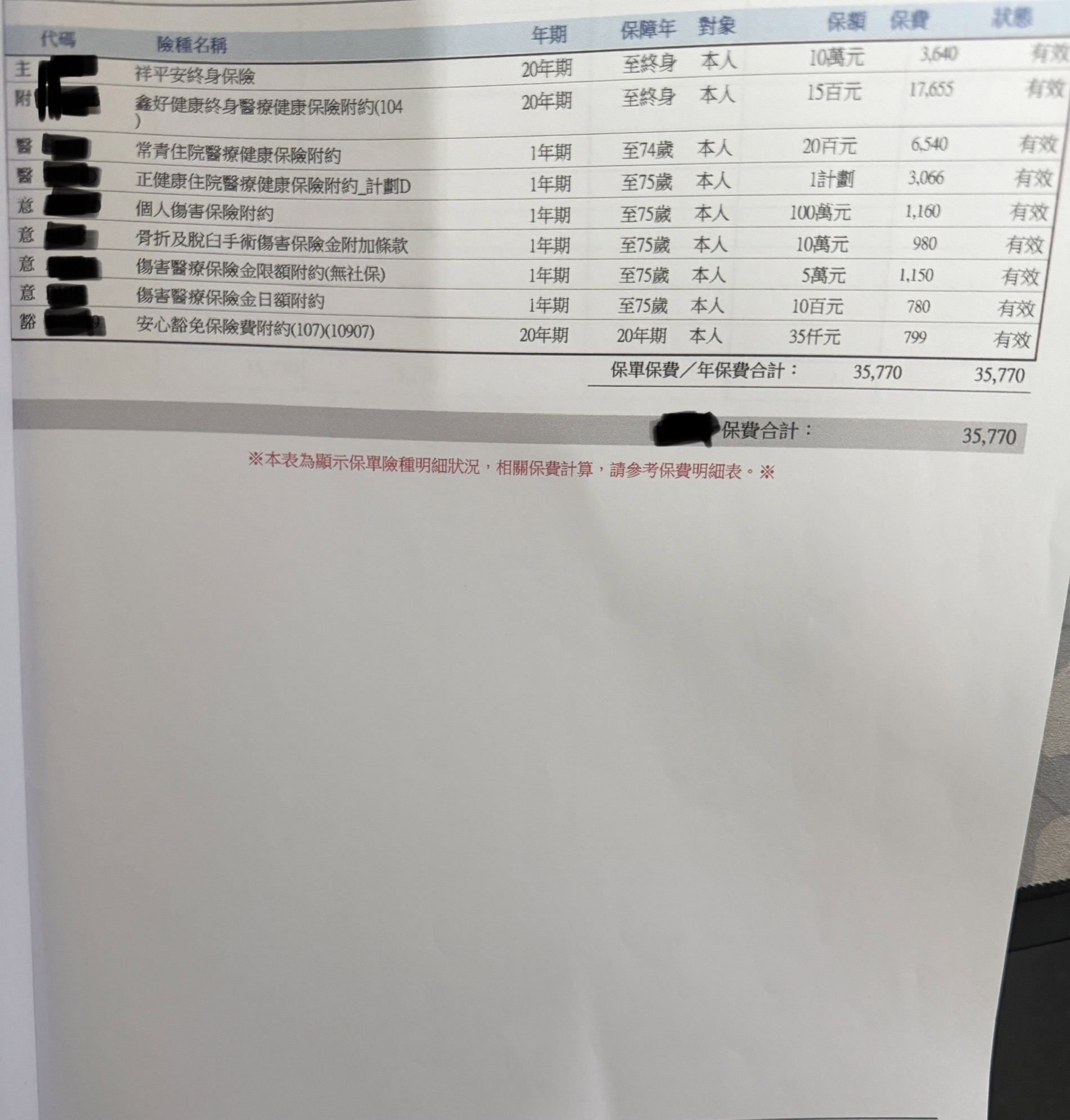 這份保單最大的問題在終身醫療,一個商品就佔了一半的保費,