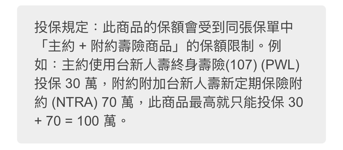 1️⃣有保額限制呦,要規劃到200才可以附加呦