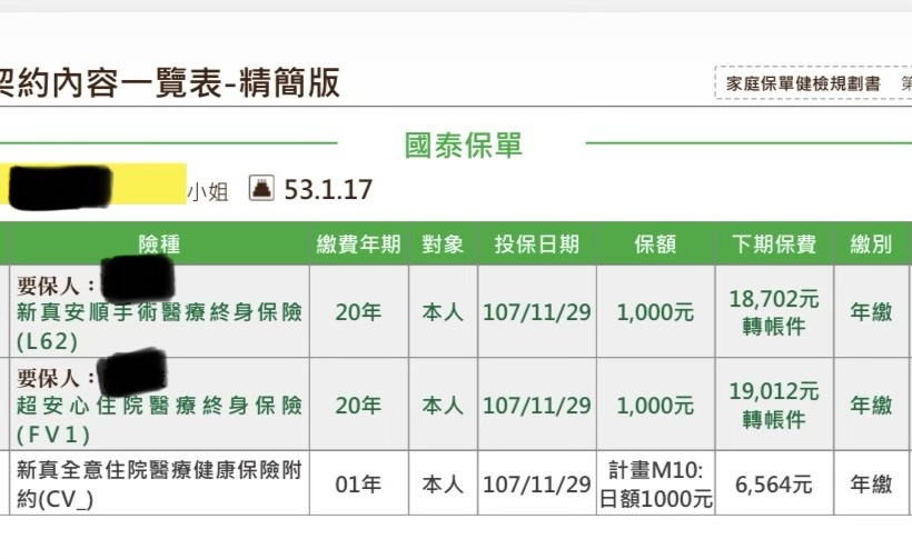 近期幫媽媽重新檢視保單後,有幾點疑慮與規劃方向想請教版上前輩: