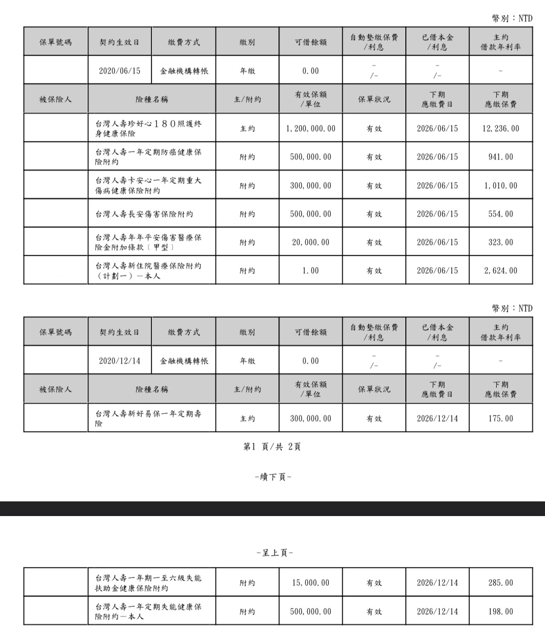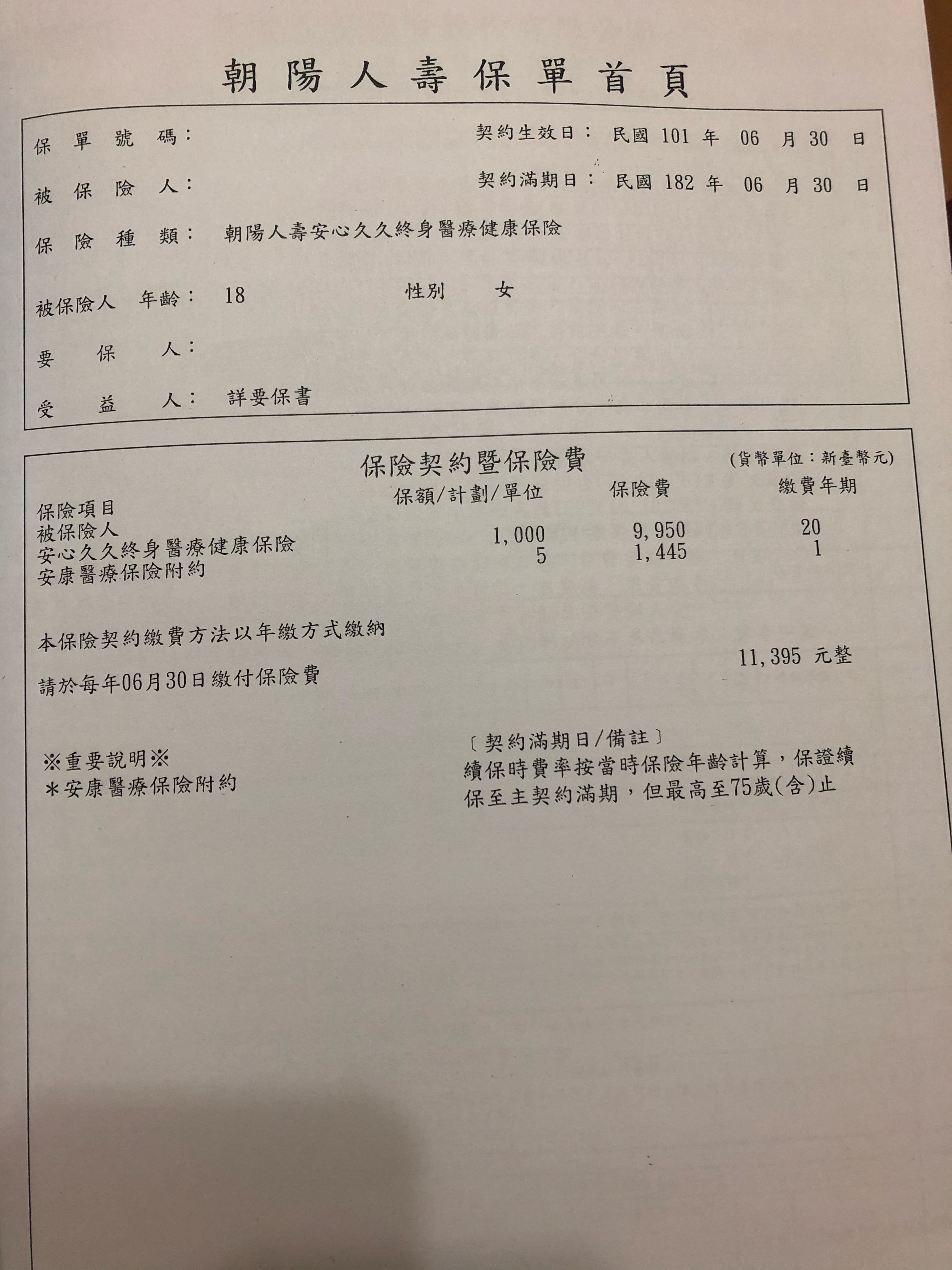 1、保單內容規劃的很好,有保到失能險是非常棒的,醫療實支保障也足夠。