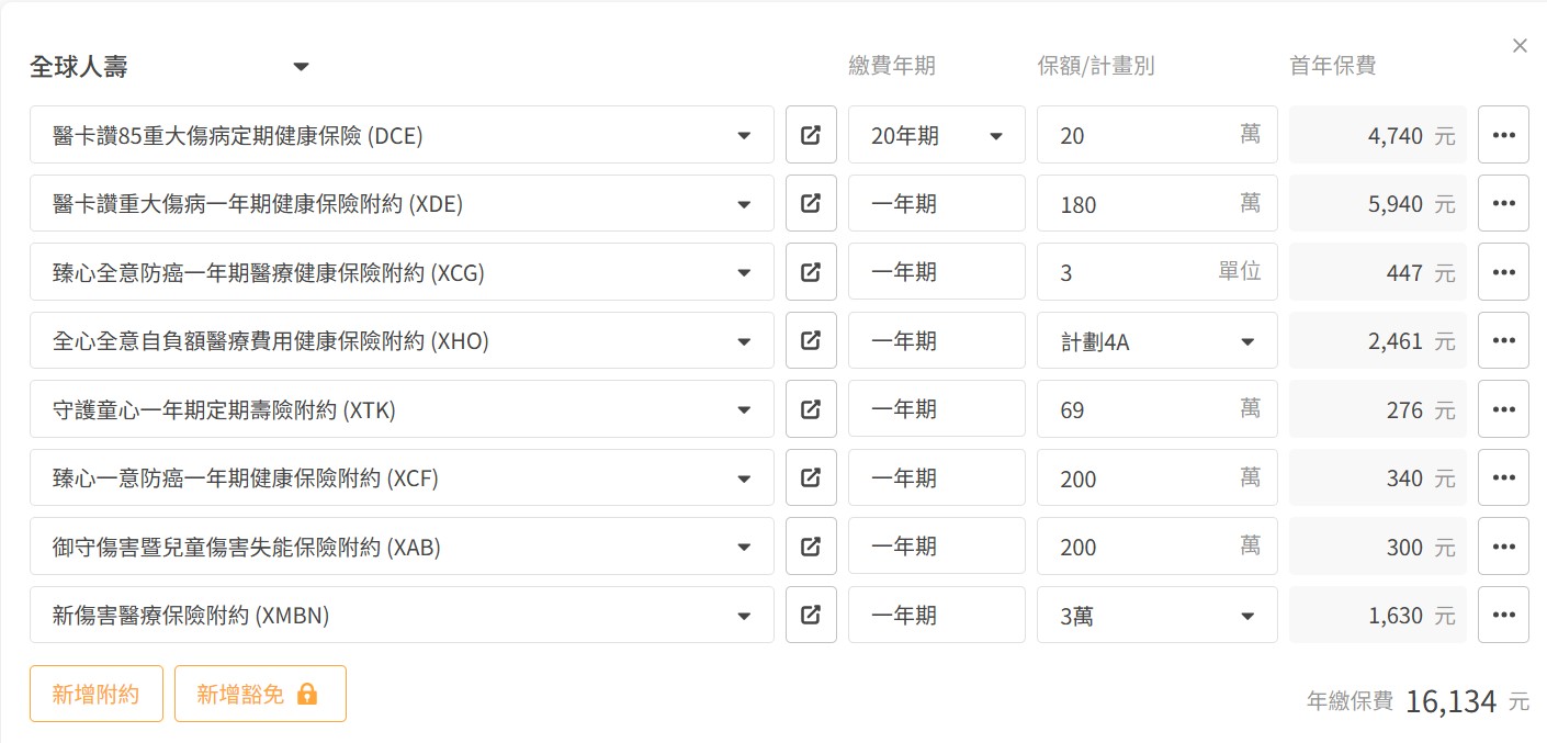 因為大部分條件好跟高CP值保障都在附約,主約只要能出單就可以囉。