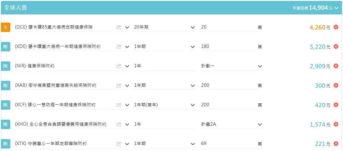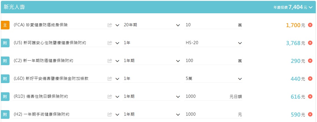 🆀目前是搭新光+全球+新安東京的組合~預算大概在2萬~2.5萬