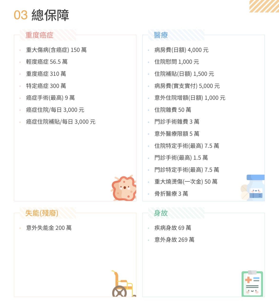 內容與細項都需要與您討論,做符合您需求的保障喔!