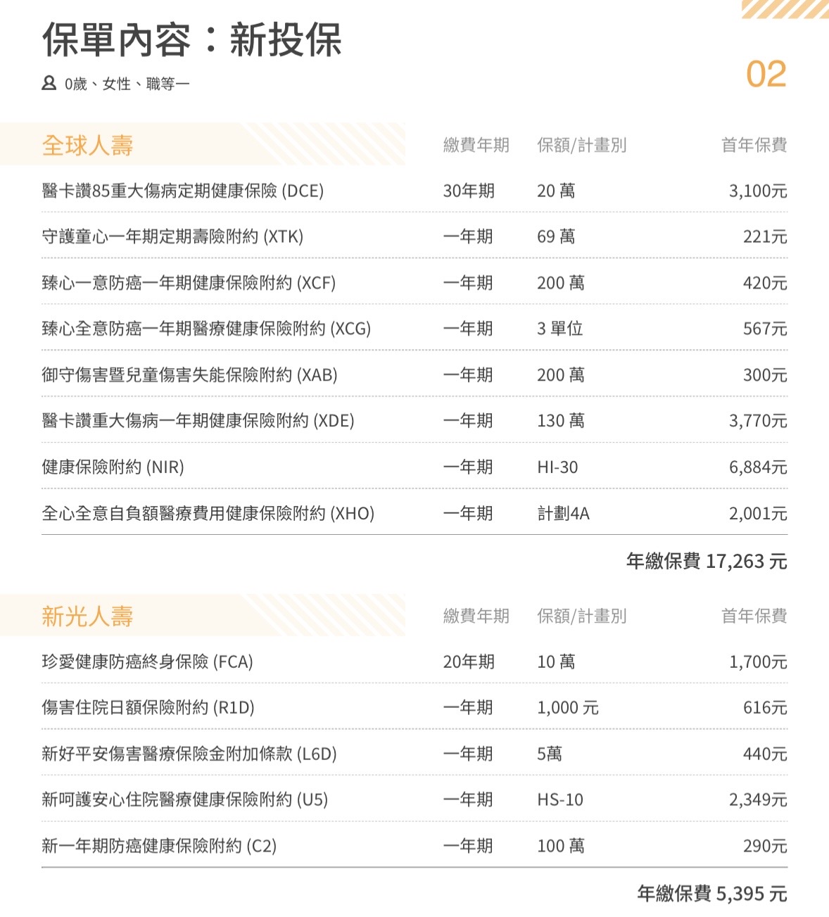 以下是我給新生兒的保障內容: