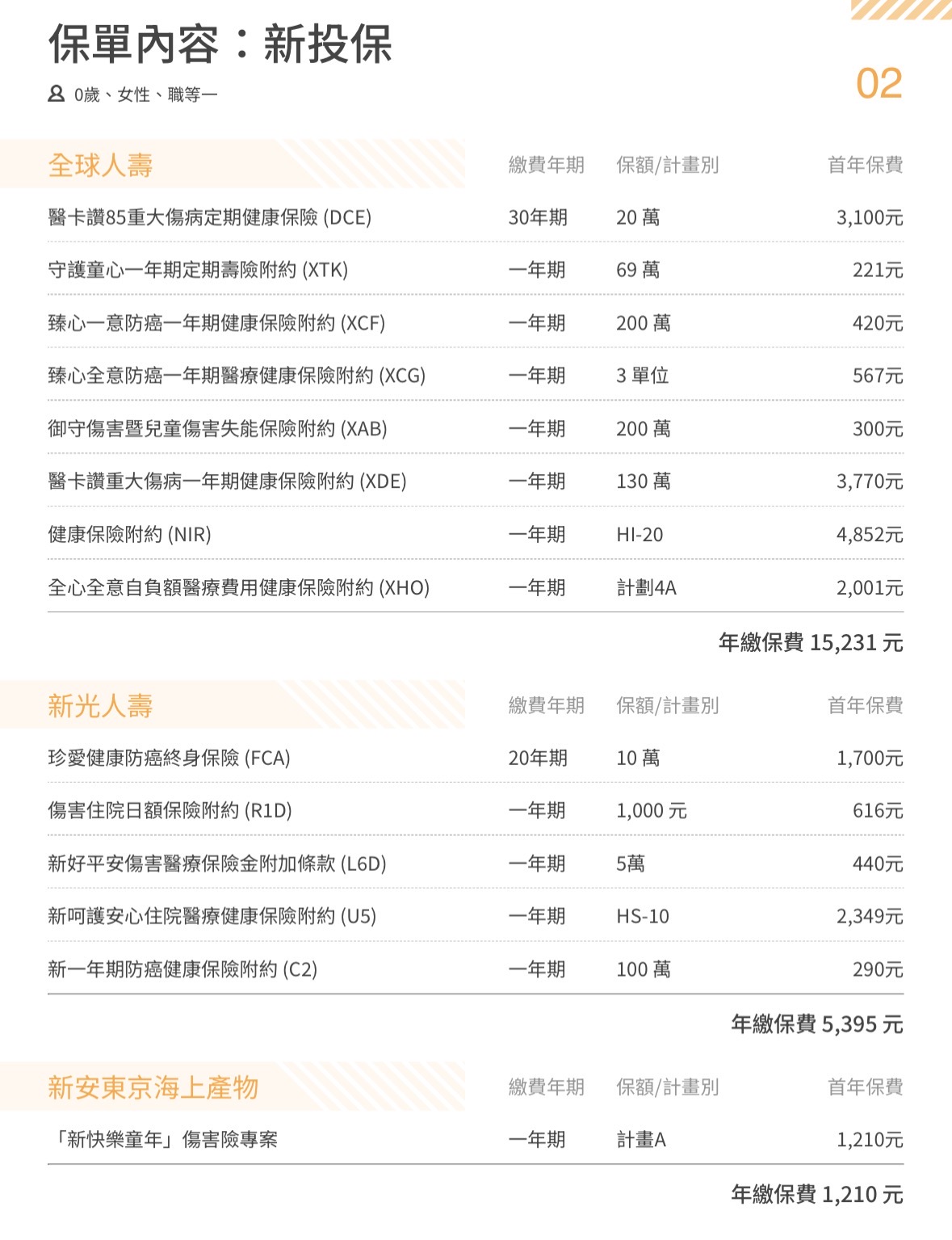 📌 這是很標準的新生兒保單規畫方式