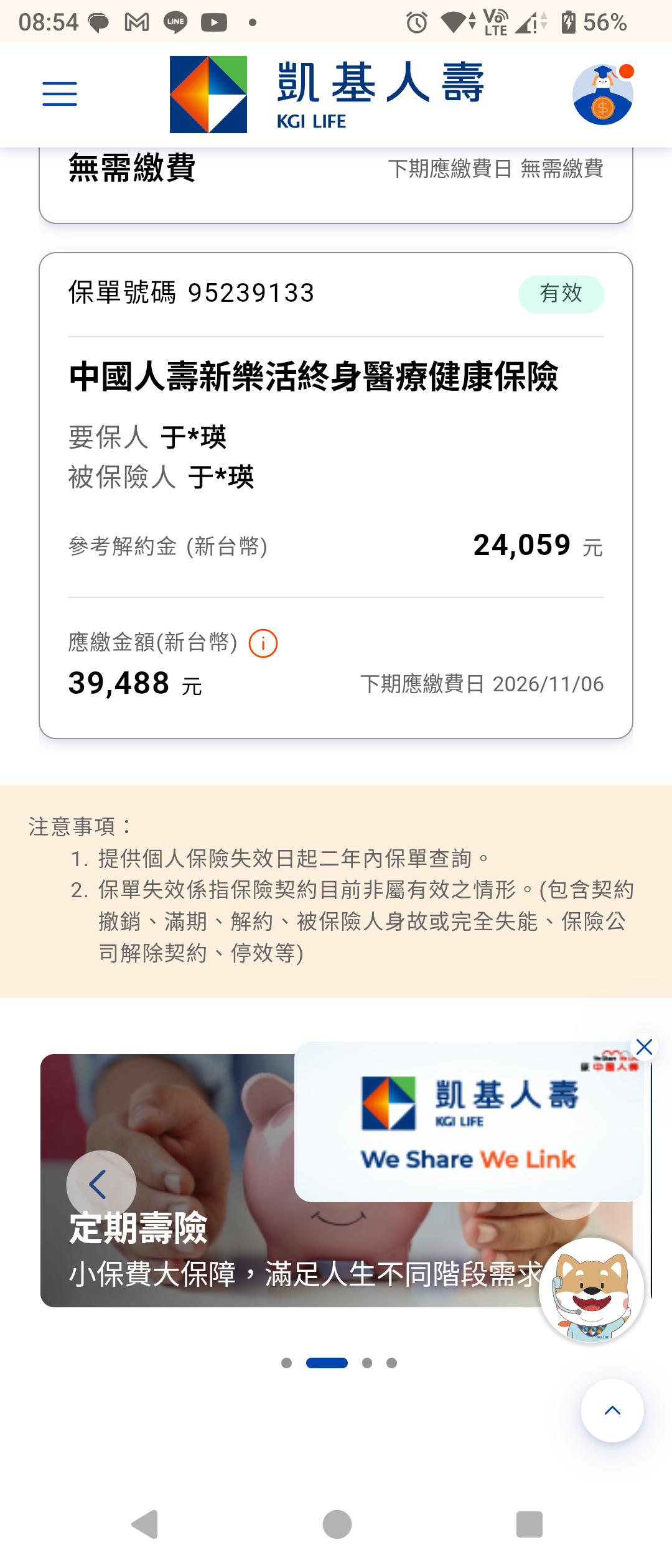 如果在乎終身醫療,這張是可以的。