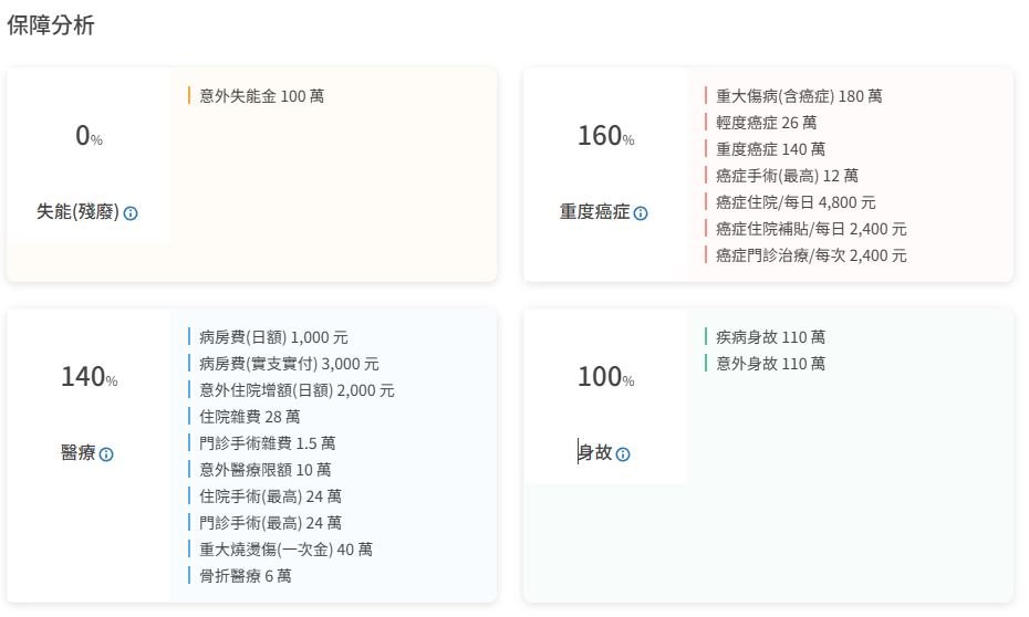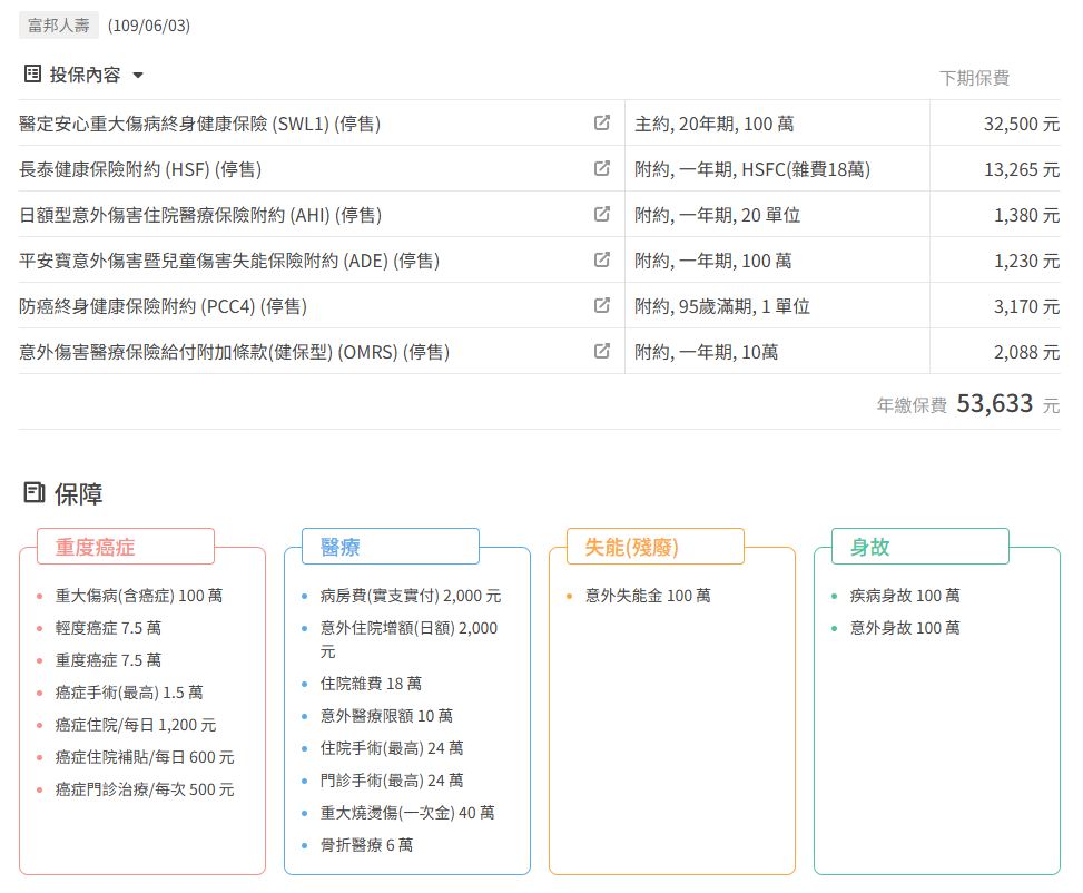 🔺舊保單有:終身重大傷病、醫療實支實付、癌症險(療程型)、意外險(含醫療)