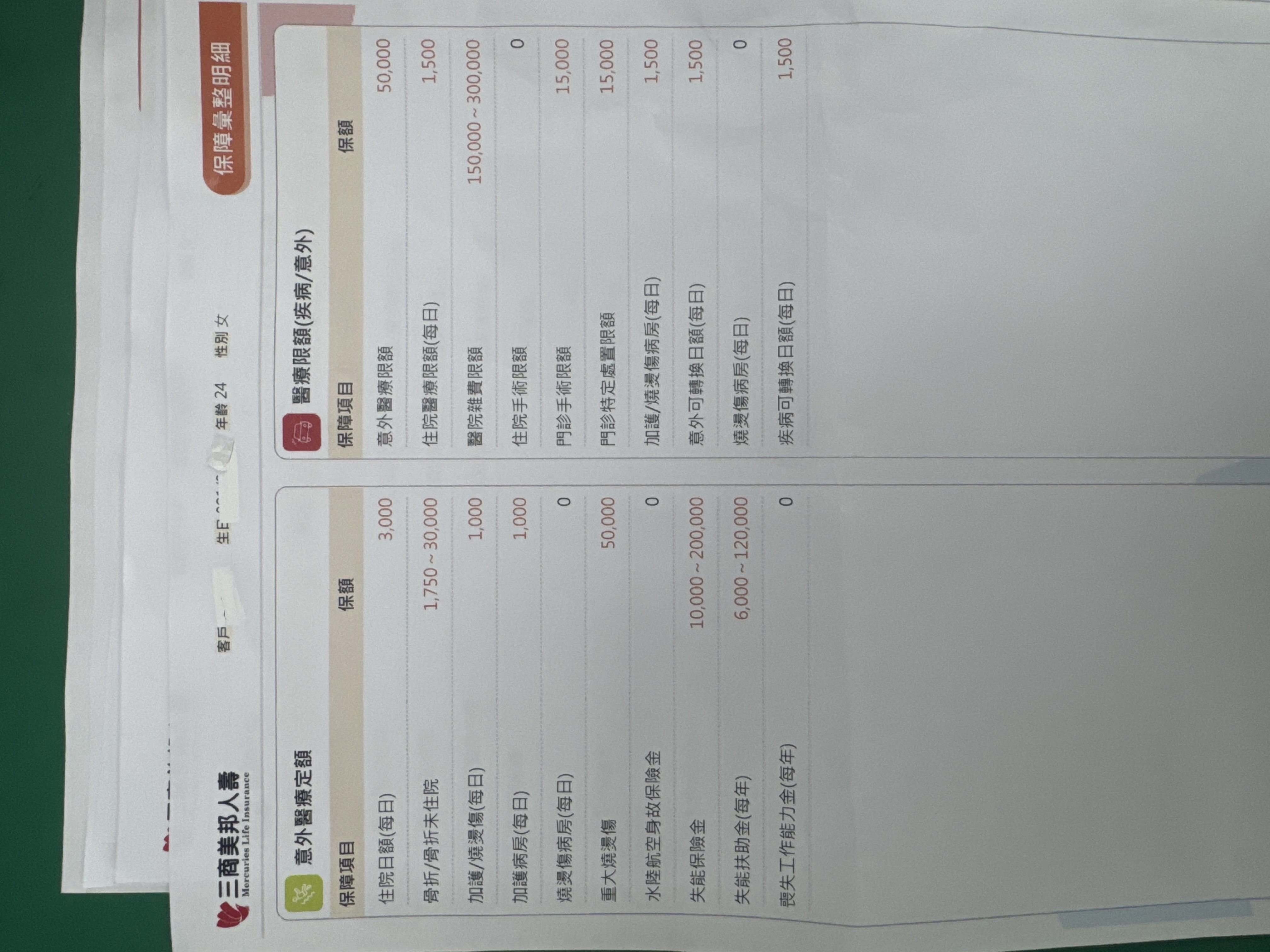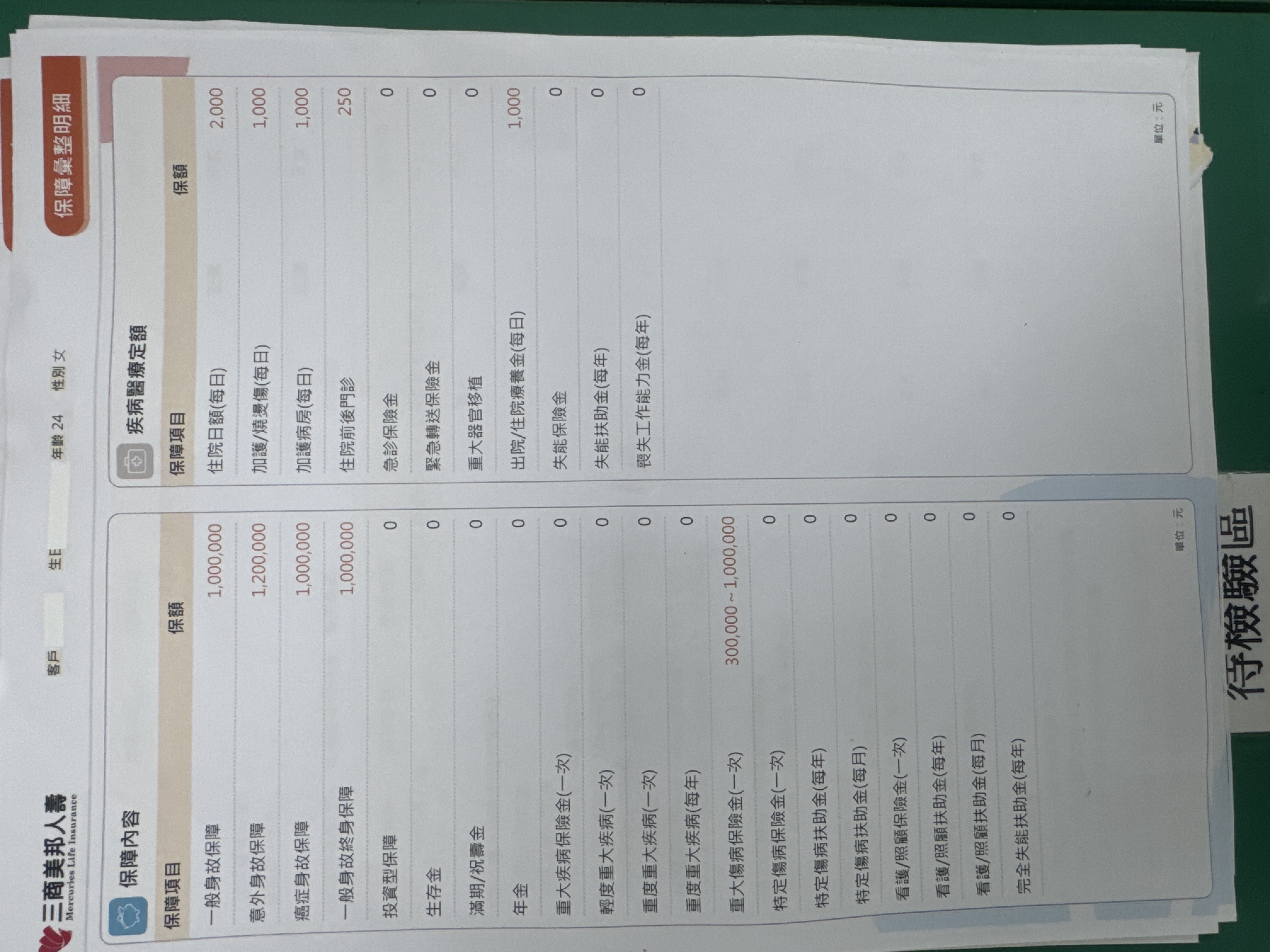 再來看看保額,其實都不高呢…