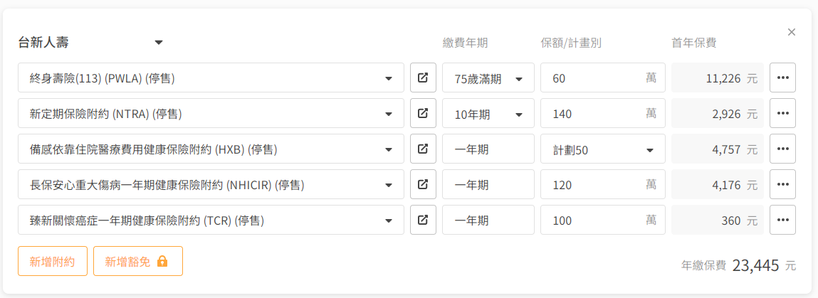 至於台新主約,如果有需要減少負擔,是可以減額繳清(但之後只能年繳且不能用信用卡繳款。而定期壽險的部分,則推薦遠雄~