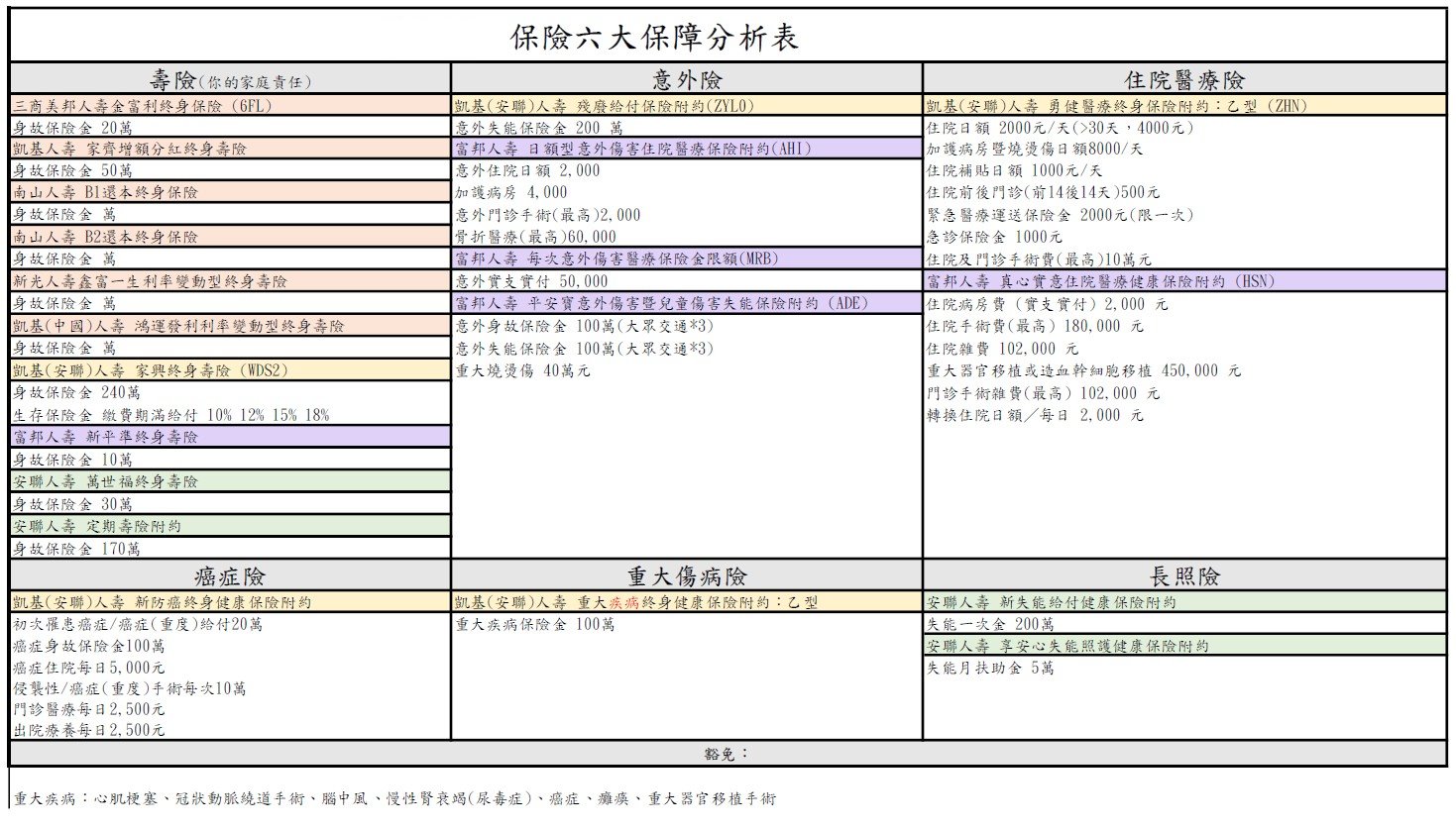 🐼我的保單健診會在乎幾個面向: