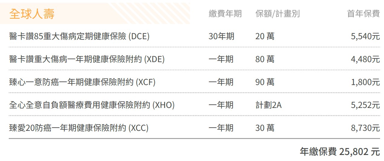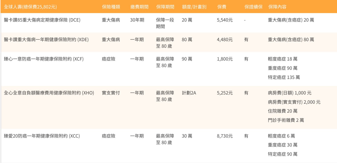 保障都規劃在同一家可以節省主約成本。