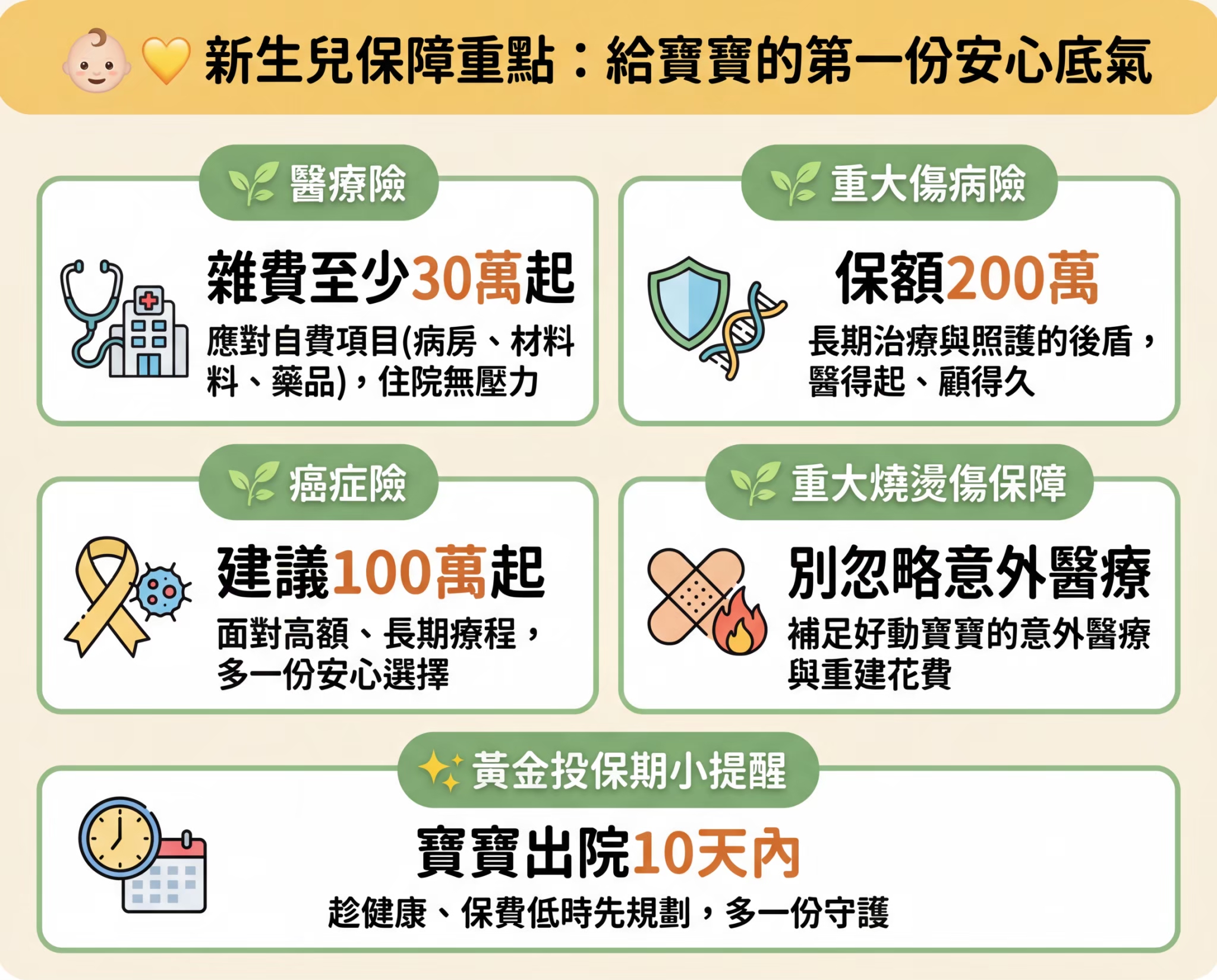 ⏰出生7~10天內:報戶口取得身份證字號,立即投保把握黃金投保期!