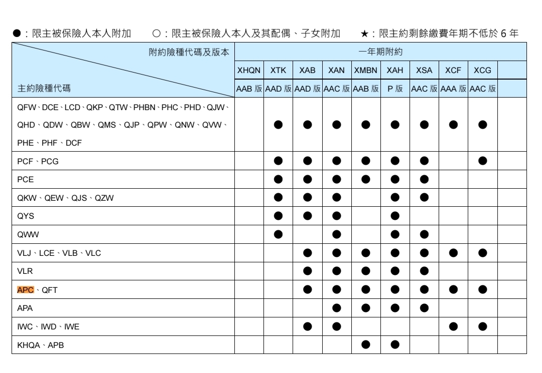 Q:請問全球人壽青春無距傷害保險 (APC)可以當主約,附加XDE跟XCF嗎?謝謝大家