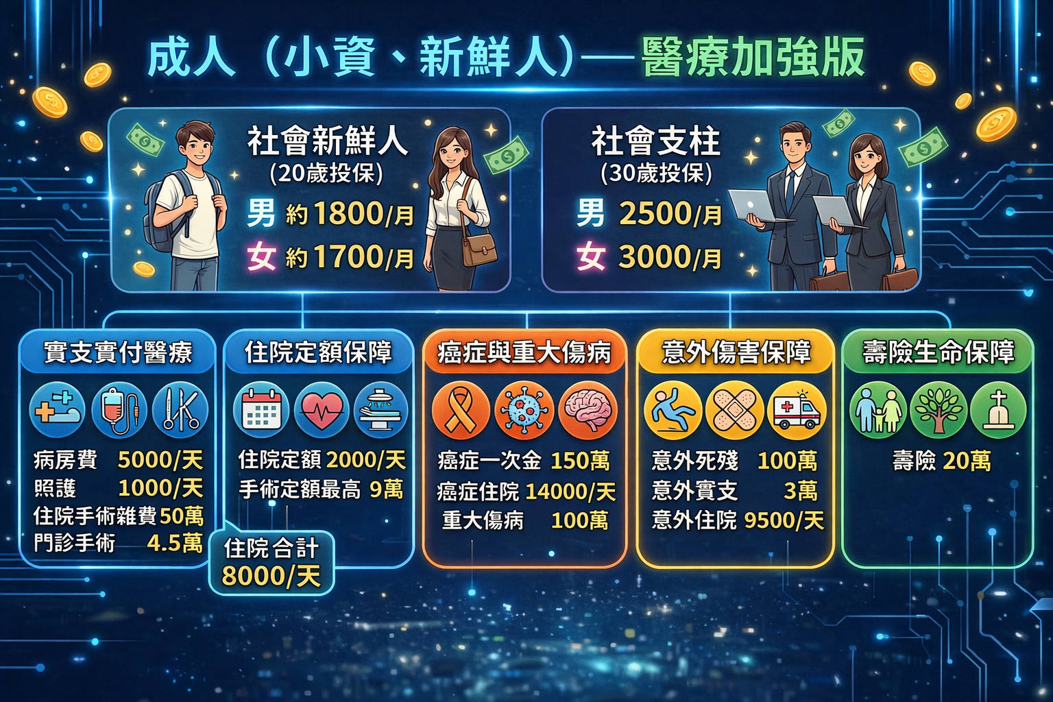 全球🔻醫療實支、重大傷病、定期醫療含住院日額、手術