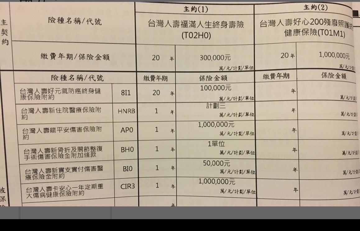 單純補癌症一次金:遠🐻or🇹🇼附加上去