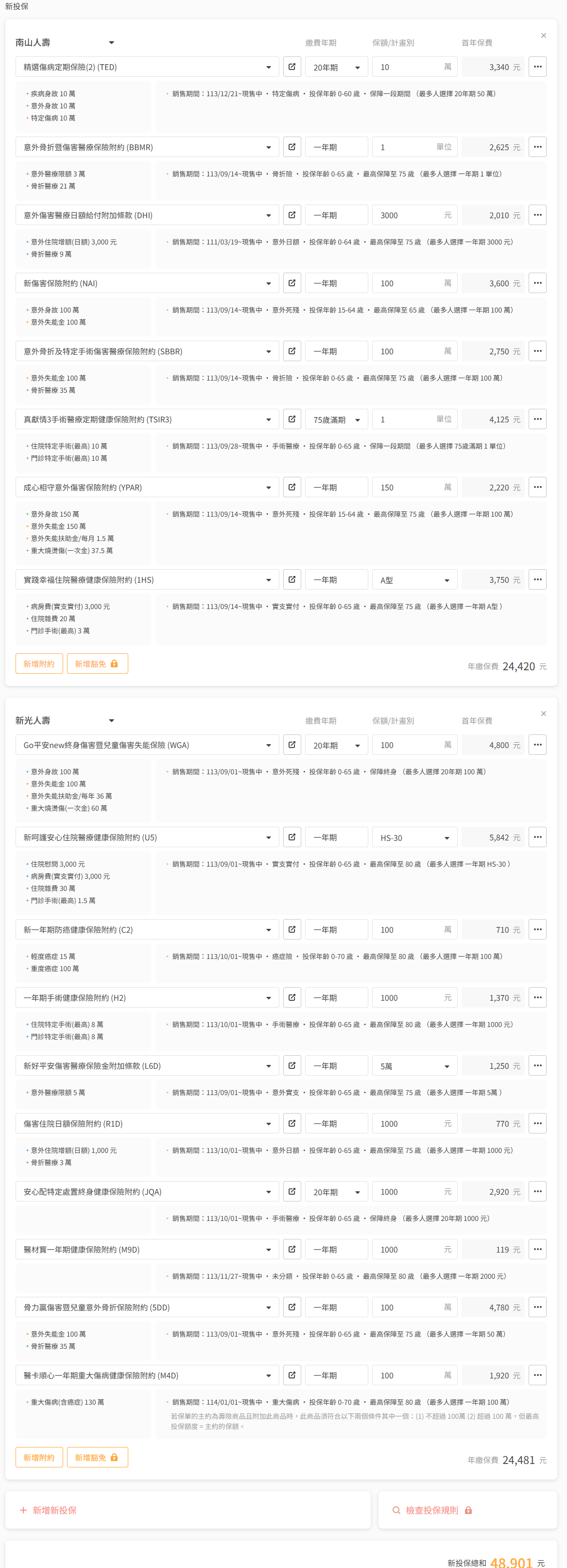 請問我這兩張保險南山vs新光的部分 哪一張相對比較優秀呢