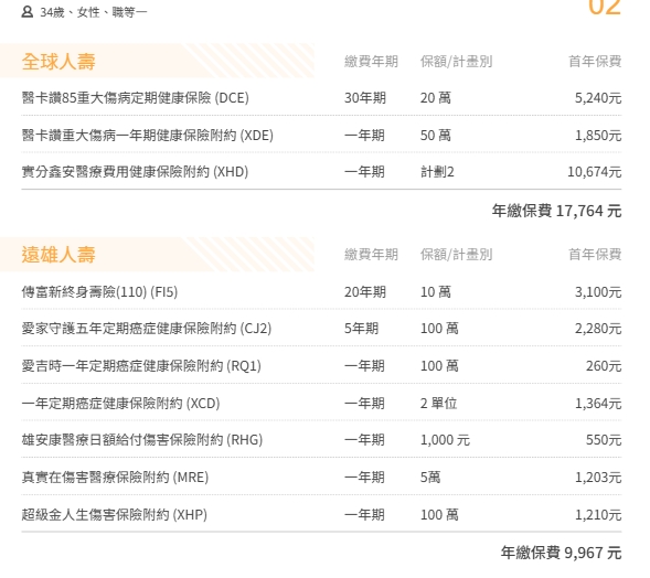 34歲女第一張保單,預算為3萬元