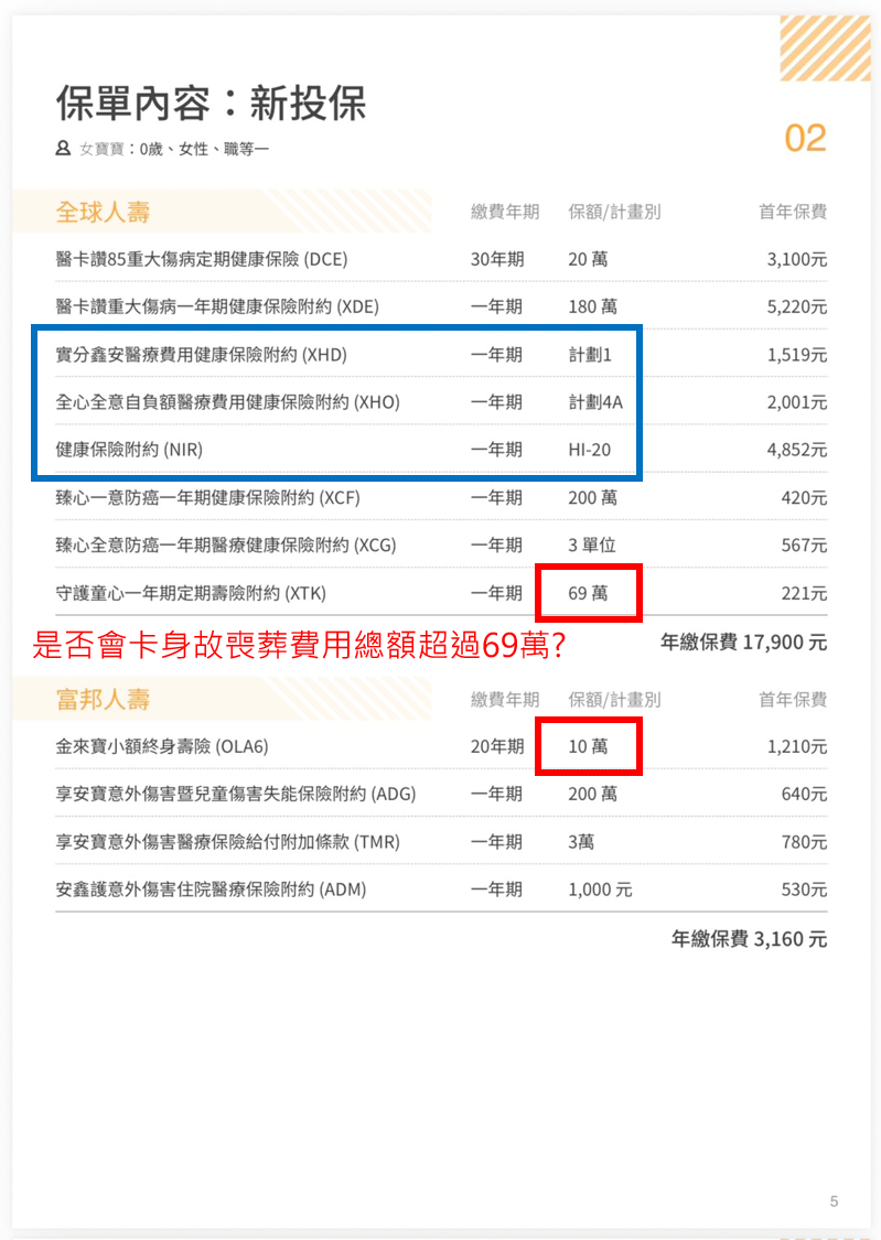 想詢問新生兒保單這樣的規劃組合OK嗎?