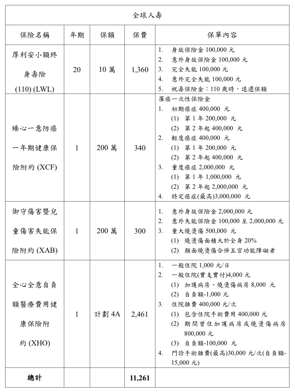 ● 新十全兒童:小朋友重大燒燙傷最高可達300萬
