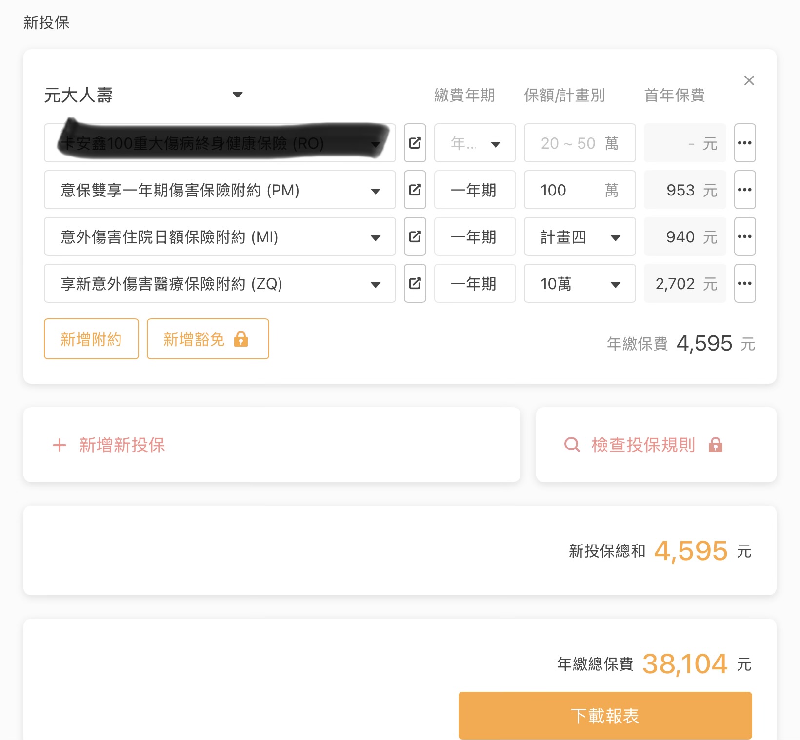 第三張是根據元大人壽目前能加保規劃的部分下去填寫計算