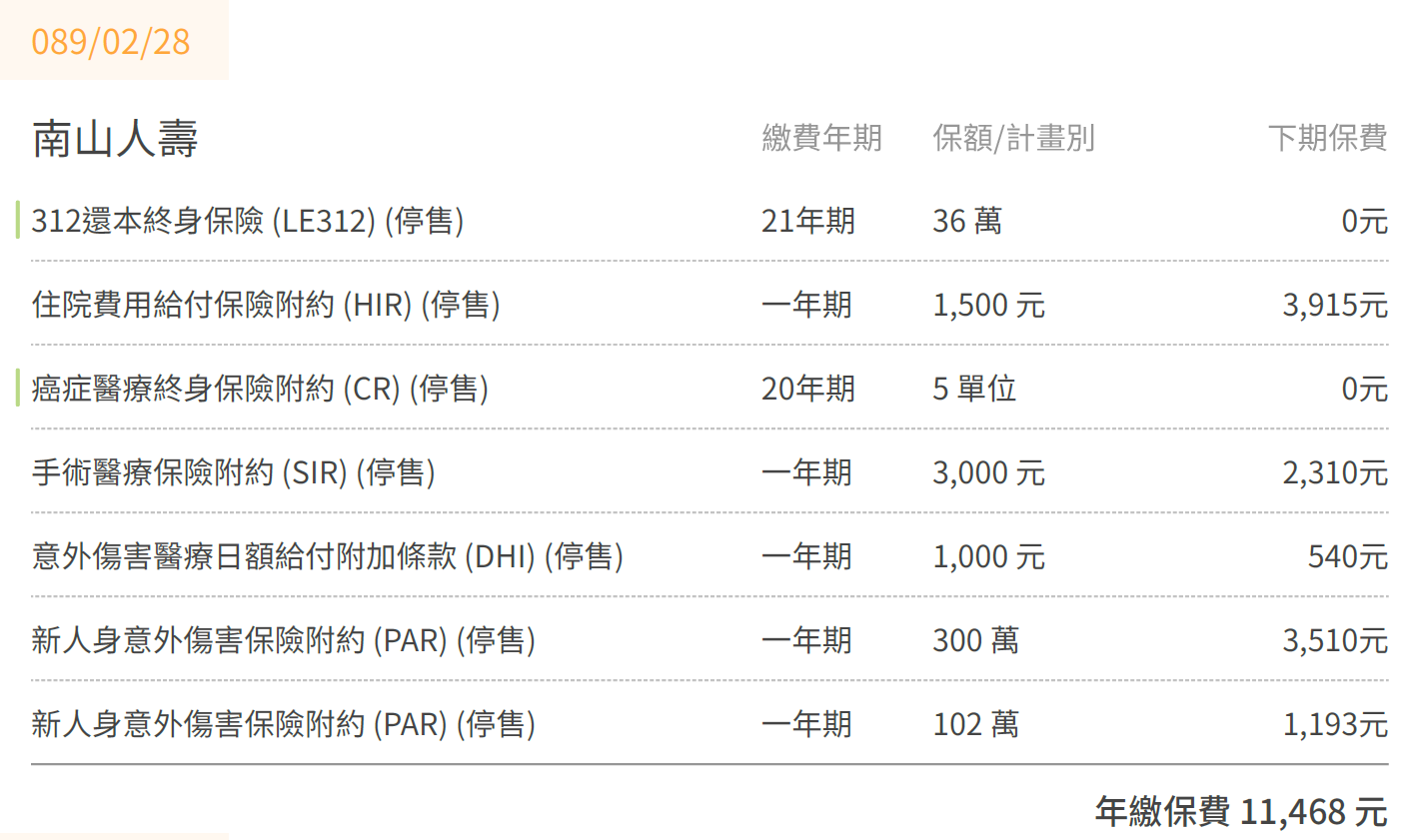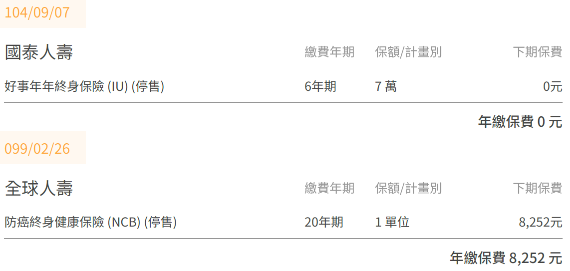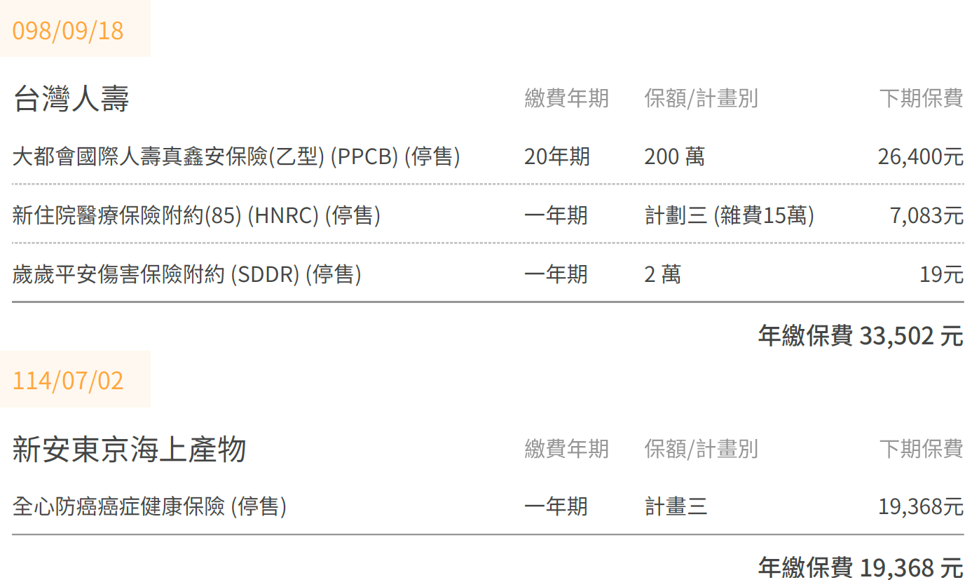 <<目前手上有的保單>>